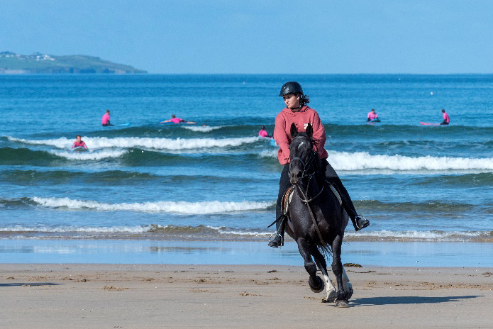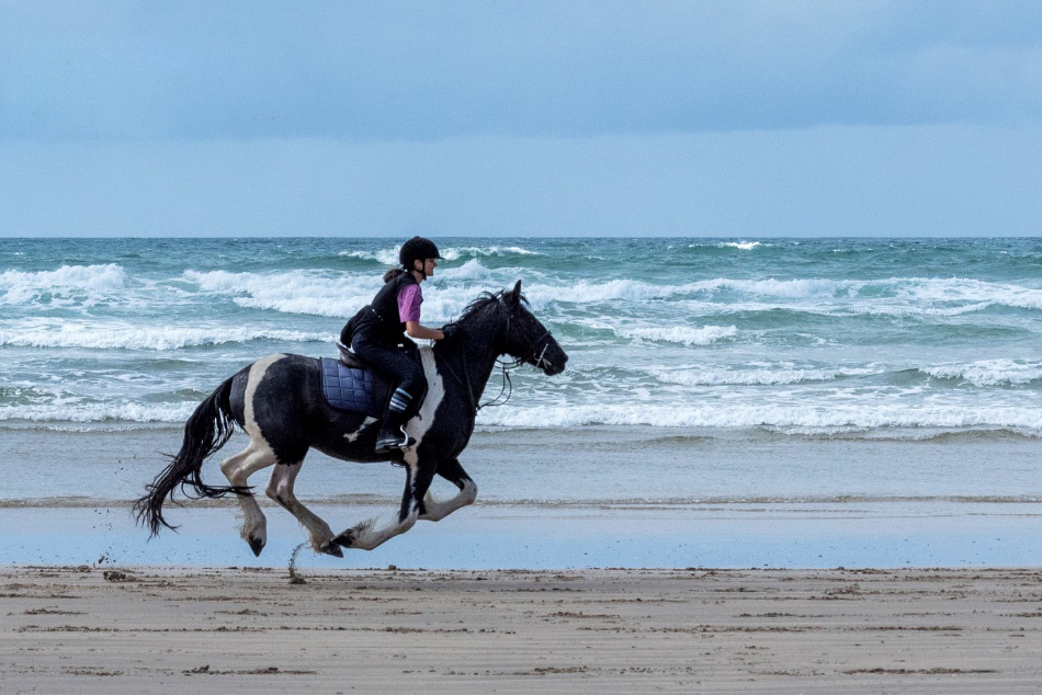 Ob im vollen Galopp am Strand entlang, oder Reit- und Spring Unterricht auf einen der 3 Reitplätze – oder entspannte Ausritte über Felder und Dünen – bei der Englisch- und Reiten-Sprachreise für Jugendliche in Donegal ist für jeden das geeignete Reitniveau dabei!