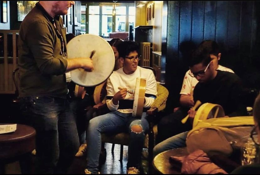 Ausflüge ausserhalb Dublins z.B. zum Malahide Casle, Bray Cliffs, Wanderung nach Graystones Sonstige Aktionen: Irish dancing, Irish Bodhran workshop (Bild), siehe mehr zu den Aktionen auf unserer Website.